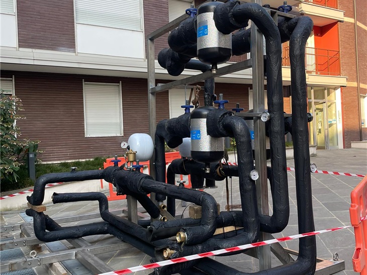 Il team di Emmetre Clima Service ha installato due pompe di calore RHOSS inverter da 70 KW/cad per la climatizzazione di 15 appartamenti in copertura di un condominio di cinque piani nel centro di Piacenza.